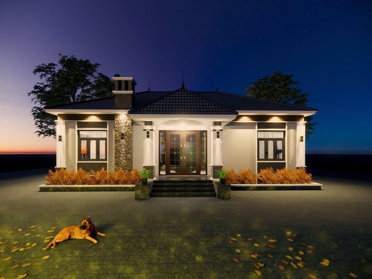 Không gian tiện nghi, phân chia công năng khoa học, phù hợp cho gia đình nhiều thế hệ. Không gian sân vườn xanh mát bao quanh giúp căn nhà luôn thoáng đãng, gần gũi thiên nhiên, là nơi lý tưởng để gia đình tận hưởng cuộc sống an yên và tiện nghi.