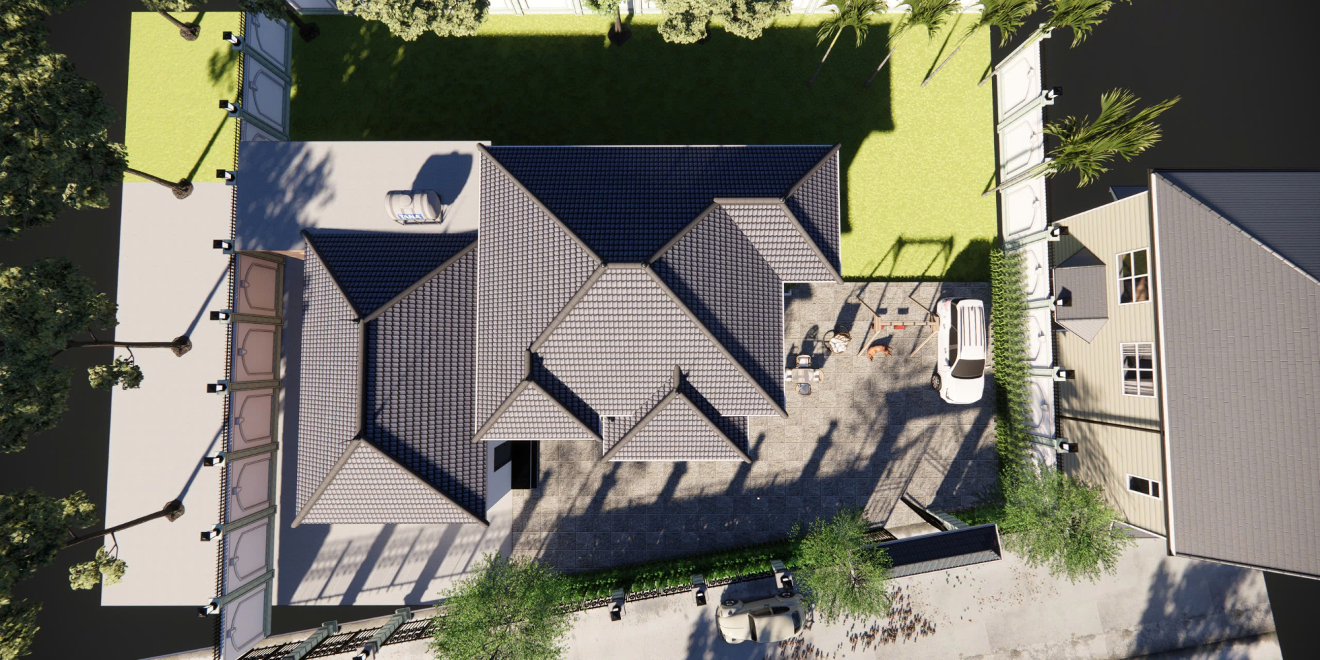Mái Nhật thoải dốc nhẹ, tạo cảm giác thanh thoát và giúp ngôi nhà luôn mát mẻ.