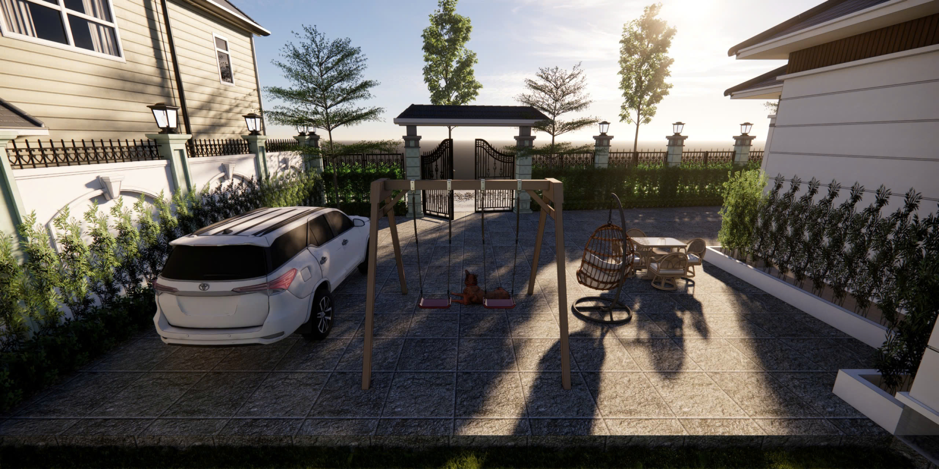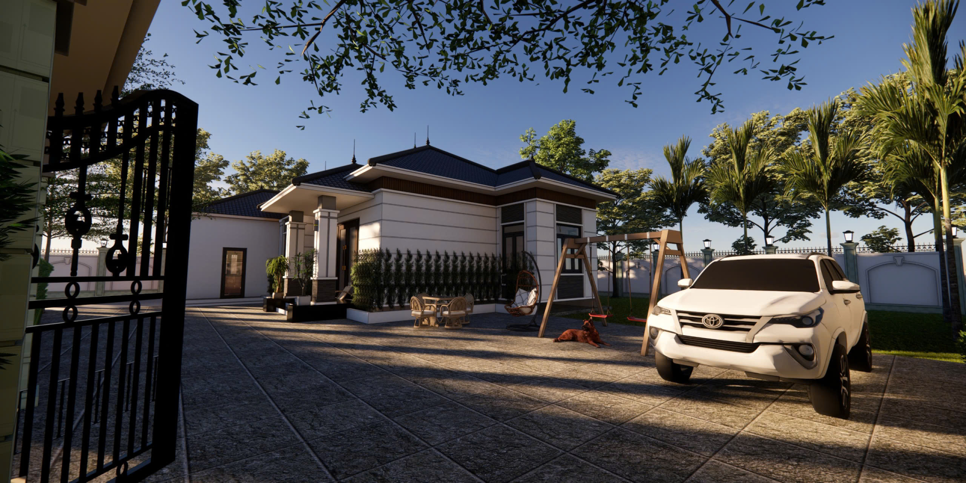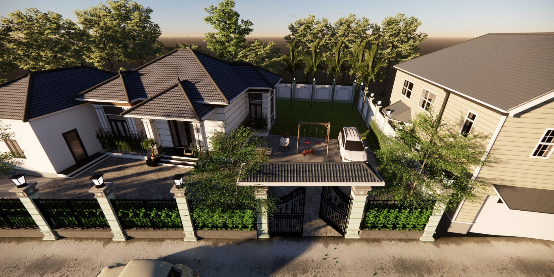 Không gian tiện nghi, phân chia công năng khoa học, phù hợp cho gia đình nhiều thế hệ. Không gian sân vườn xanh mát bao quanh giúp căn nhà luôn thoáng đãng, gần gũi thiên nhiên, là nơi lý tưởng để gia đình tận hưởng cuộc sống an yên và tiện nghi.