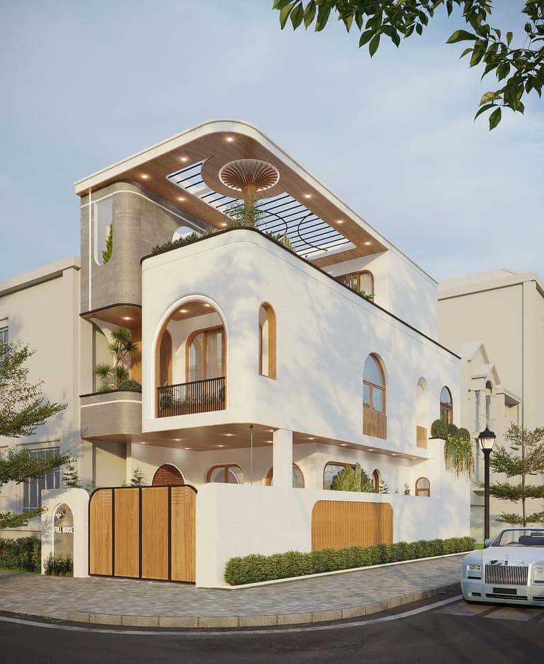 Không gian sống được tối ưu hóa với kiến trúc mở, đón gió và ánh sáng tự nhiên, kết hợp cùng mảng xanh tạo nên sự hài hòa giữa thiết kế hiện đại và thiên nhiên trong lành. Không gian mở thoáng đãng, tận dụng ánh sáng tự nhiên và gió trời, mang lại sự thoải mái cho gia chủ.