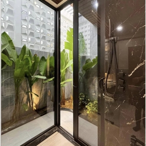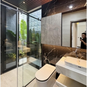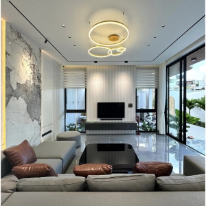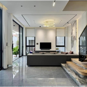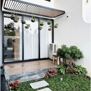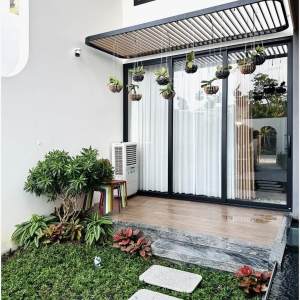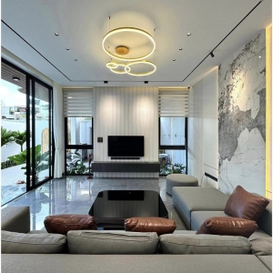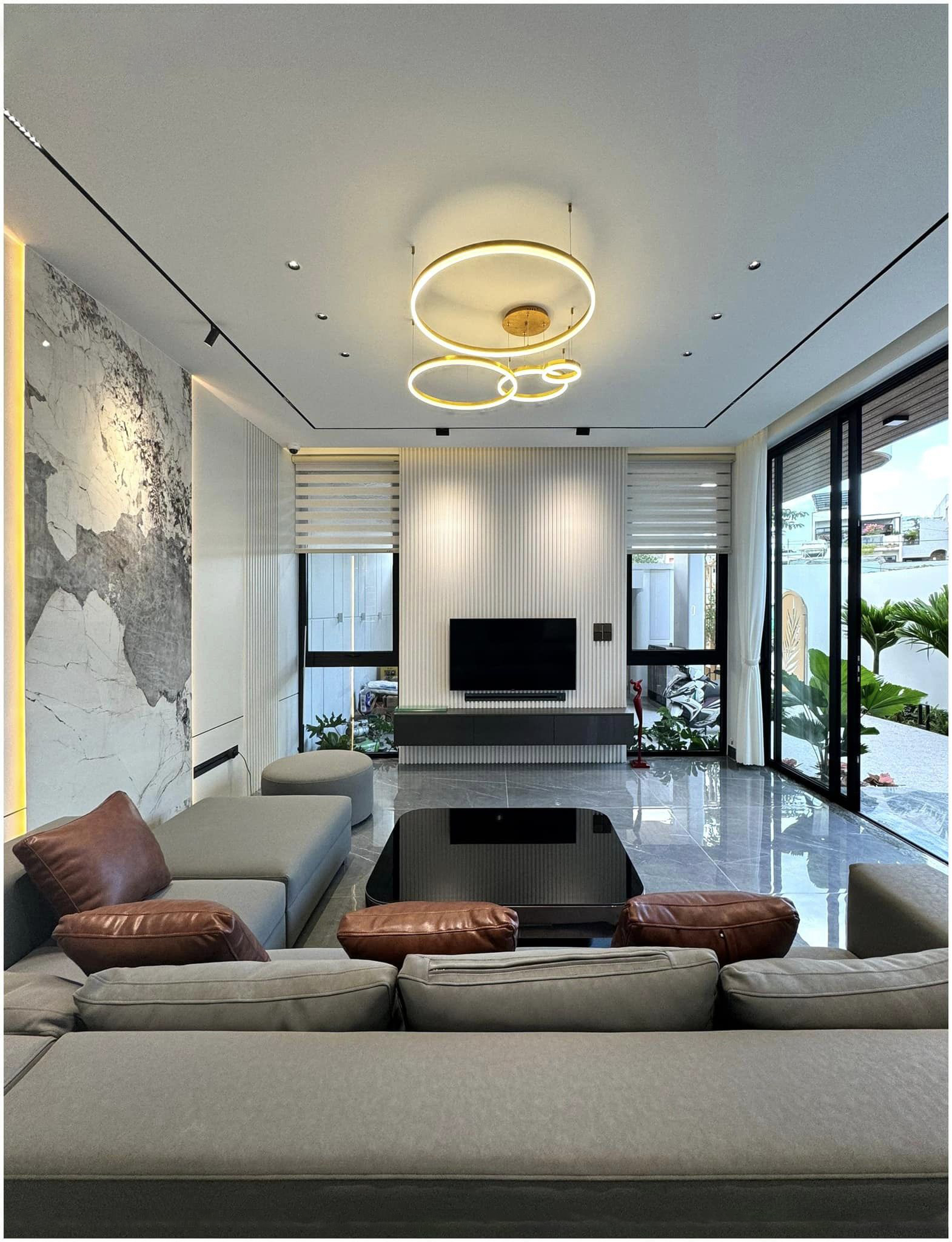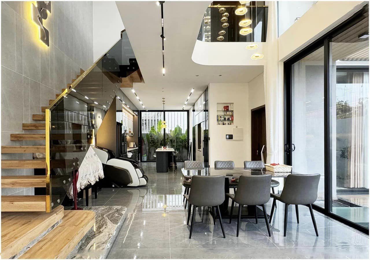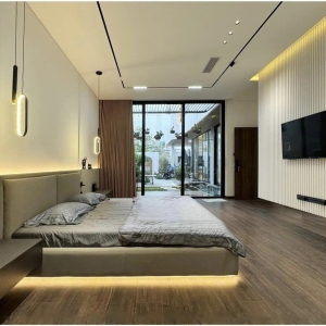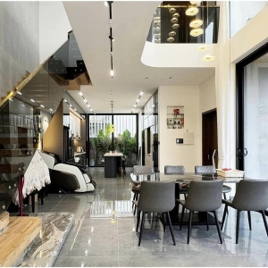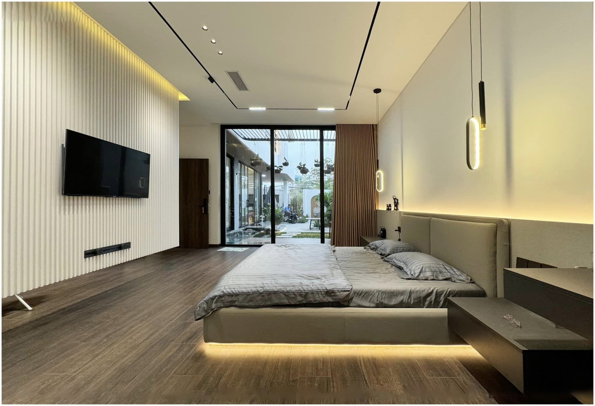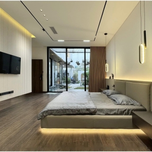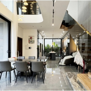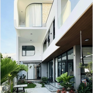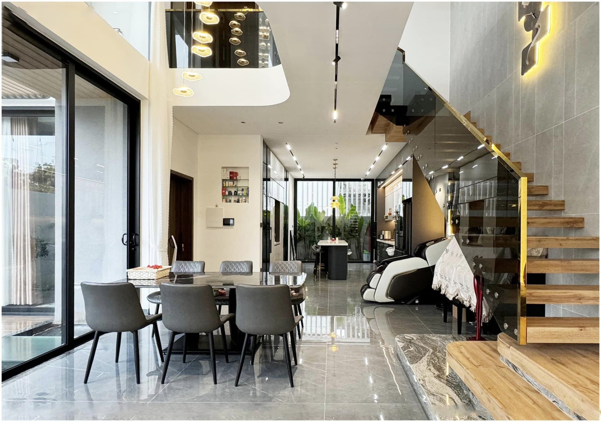 Không gian sống được tối ưu hóa với kiến trúc mở, đón gió và ánh sáng tự nhiên, kết hợp cùng mảng xanh tạo nên sự hài hòa giữa thiết kế hiện đại và thiên nhiên trong lành. Không gian mở thoáng đãng, tận dụng ánh sáng tự nhiên và gió trời, mang lại sự thoải mái cho gia chủ.